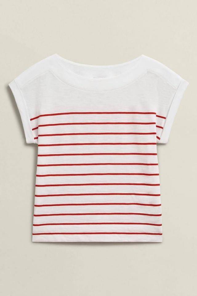 Nothing beats a colourful stripe. And cut with a boat neckline and relaxed fit, the Alycia t-shirt balances being polished yet practical effortlessly.Made from responsibly sourced cottonStripe finish and slub textureRelaxed fitShort sleeveBoat neckLength: Side neck point to hem 58cm / 23 inchesModel is 175cm/5’9” and is wearing a size SProduct Code: 0125-2951-1144L00