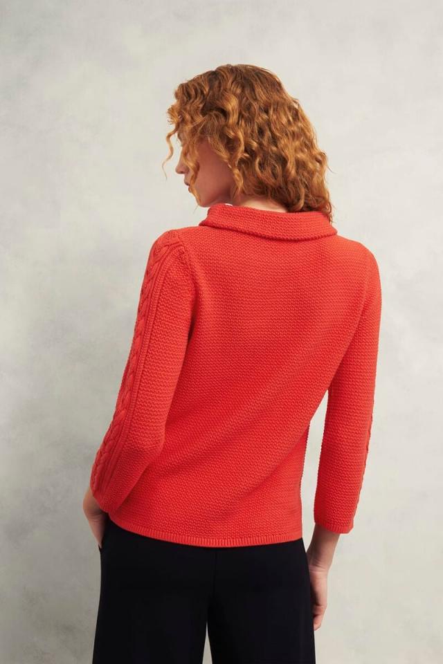 Exceptionally soft and alluring in style, look to the Camilla cable jumper this season for effortless outfitting solutions.Made using responsibly sourced cottonRelaxed fitRolled boat neckThree-quarter length sleeveTextured knit with cable knit detailLength: Side neck point to hem 59cm / 23 inchesModel is 176cm / 5’9.5” and is wearing a size SProduct Code: 0125-9748-1144L01Reviews (28)