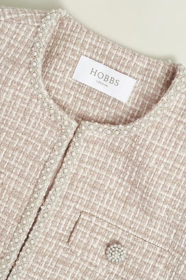An instant outfit elevator, the Oriana jacket in timeless tweed is adorned with pearl trims and button embellishments.Neutral tweed fabricFully linedPart of a setPocket details and embellished buttonsElevated pearl trimsLength: Side neck point to hem 46.5cm / 18.3 InchesModel is 176cm / 5’9.5” and is wearing a size 14Product Code: 0125-4064-9045L00